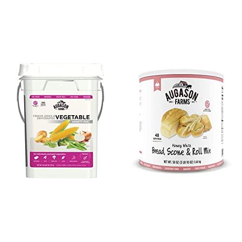 Augason Farms Freeze Dried Vegetable Variety Pack 4 gallon Kit & Honey White Bread Scone & Roll Mix Emergency Food Storage #10 Can