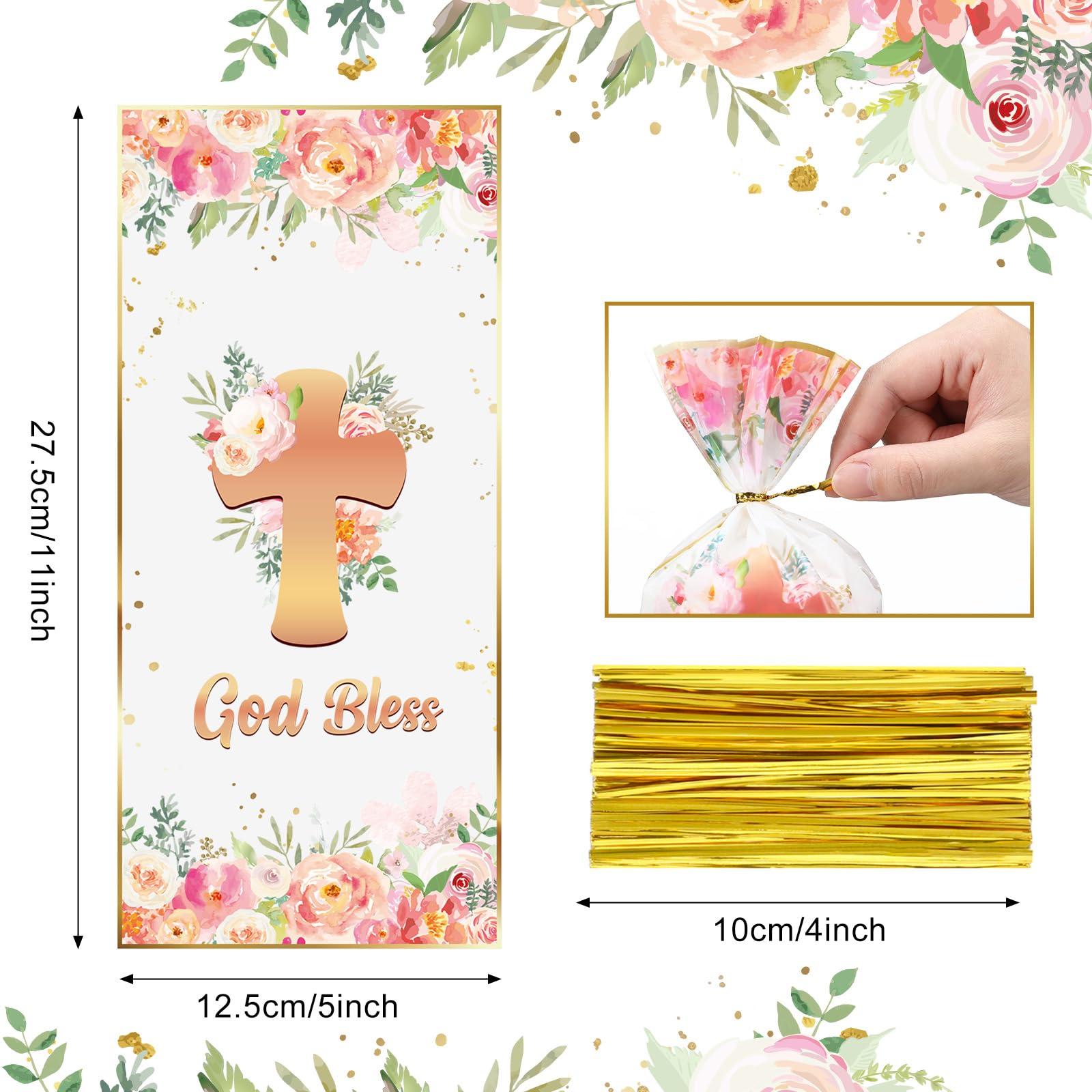 - Adequate Quantity: you will receive 100 pieces of baptism cellophane bags and 150 pieces of gold ties, plenty to meet your party food and gift wrapping needs, or you can give them to your friends or family for use