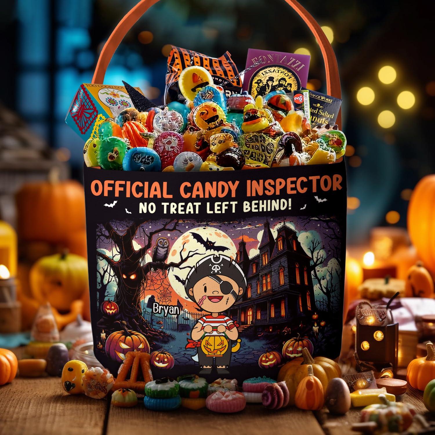 Get ready for trick-or-treating with the "Halloween Official Candy Inspector - Personalized Halloween Spooky Basket." This fun and spooky candy basket is perfect for kids, featuring a playful monster costume pattern that adds to the Halloween spirit. Personalized for your little one, this basket makes collecting Halloween treats even more special. It's a great gift for kids, ensuring they're ready to gather their favorite sweets while officially inspecting the candy loot!