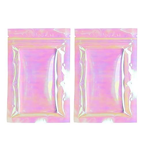 - DOUBLE-SIDED HOLOGRAPHIC: These unique bags feature two holographic windowed sides on the front and back. This clear rainbow colorway will shift the color of the stored products. These iridescent bags will shift and color as the viewing angle changes.
